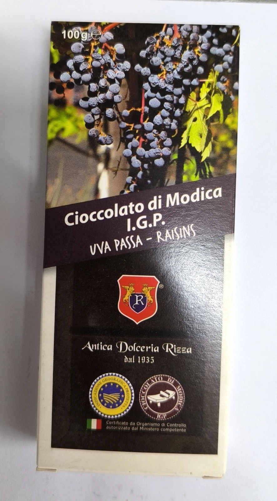CIOCCOLATO DI MODICA UVA PASSA ANTICA DOLCERIA RIZZA DAL 1935 100 G